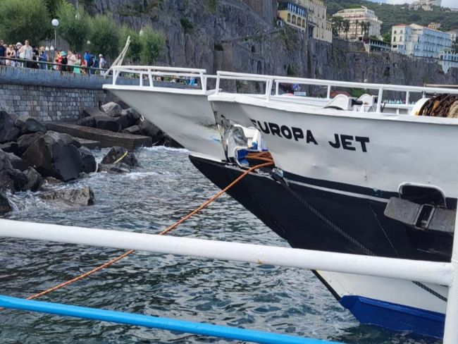 In data odierna, alle ore 09:45 circa, presso il pontile esterno del porto di Marina Piccola nel Comune di Sorrento (NA) la motonave Europa Jet, in arrivo da Capri con a bordo 12 passeggeri e 6 persone di equipaggio, durante la manovra di ormeggio, urtava con la prua i respingenti della banchina, creando danni all’unità ed al pontile stesso. Sul posto sono intervenuti nell’immediato i militari della Guardia Costiera del locale Ufficio Marittimo di Sorrento i quali, dopo aver accertato il buono stato di salute di passeggeri ed equipaggio che non avevano riportato alcuna ferita, hanno provveduto al fermo immediato del mezzo ed all’interdizione del pontile per motivi di sicurezza. Sono in corso tutti gli accertamenti del caso da parte dell’autorità marittima competente per verificare le cause che hanno portato al sinistro in oggetto. Il traffico destinato al pontile esterno verrà momentaneamente dirottato verso le banchine interne al porto di Sorrento senza arrecare disagi ai passeggeri.