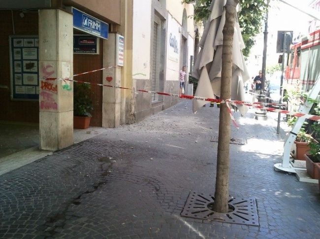 Torre Annunziata - Crollo di calcinacci in corso Umberto I, paura davanti al commissariato