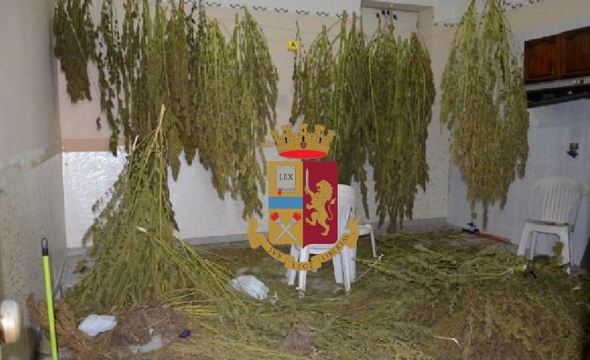 All’interno di un altro stabile gli agenti hanno rinvenuto 165 piante di marjuana,16 kg di canapa indiana in una busta , 4 kg. Di canapa indiana già imbustata in confezioni da un kg. Pronta alla vendita. Ed inoltre 2altre 2 buste contenenti rispettivamente 275 e 270 grammi e un ventilatore utilizzato per essiccare la sostanza stupefacente.