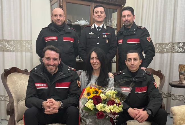 Tre carabinieri si alternano in un massaggio cardiaco. Secondo i medici intervento determinante per salvarle la vita.