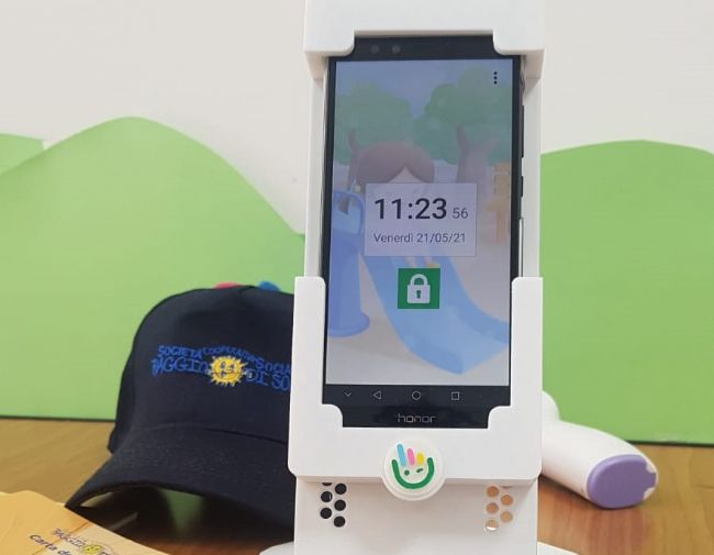 “Raggio di Sole”, oltre all’utilizzo dell’app, ha fornito cappellino e divisa a ciascun bambino, con colori e logo della cooperativa.