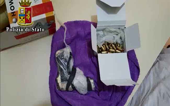 Gli agenti in seguito ad accurate indagini, hanno effettuato nella tarda serata di ieri, un controllo presso l'abitazione dell'uomo in Via Mazzini; i poliziotti, hanno scoperto all'interno del vano cassonetto della tapparella del salone, una pistola Beretta cal. mm9 corto con matricola abrasa e 57 cartucce cal. 380auto.
