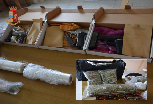 Sabato mattina gli agenti del Commissariato di Torre Annunziata hanno effettuato un controllo in via Bertone presso uno stabile diroccato e sottoposto a sequestro. Nel corso dell’attività i poliziotti, in un appartamento al primo piano, hanno rinvenuto tre pistole semiautomatiche di cui una Beretta cal. 40 munita di 10 cartucce di cui una camerata con matricola punzonata, una “TT9” cal. 9 con 10 cartucce e una camerata con matricola punzonata e una “CZ99” cal.9 completa di caricatore con 10 cartucce con matricola completamente abrasa; inoltre, sono state rinvenute 340 cartucce cal. 223 ed altre 4 cal. 9. Gli operatori hanno controllato altri due appartamenti situati ai piani superiori dove hanno altresì rinvenuto 26 sacchetti contenenti complessivamente oltre 7 kg di marijuana, 50 cartucce cal. 9, diverso materiale per la pulizia delle armi e per il confezionamento della droga.