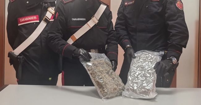 I militari, supportati anche da personale del Reggimento Campania, hanno bloccato i due prima che riuscissero a fuggire. Nei bustoni 1 chilo e 350 grammi di marijuana.