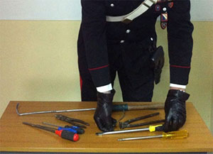Sottoposti a perquisizione, sono stati trovati in possesso di arnesi atti allo scasso, venendo così denunciati in stato di libertà per loro illecito possesso. Con successive verifiche i carabinieri hanno accertato che uno di loro, Asan Dan, 22 anni, rumeno, domiciliato a Napoli nel campo nomadi di via Gianturco, già noto alle forze dell'ordine, è destinatario di un ordine di carcerazione emesso il 04.02.2015 dal tribunale di Avellino per furto aggravato in abitazione in concorso commesso il 04.07.2014 ad Avellino e dovrà espiare la pena residua di un anno e 3 mesi di reclusione. Il veicolo è stato sequestrato amministrativamente per violazioni al codice della strada. Sono ora in corso indagini per accertare o meno il loro coinvolgimento in recenti furti in abitazione della zona.