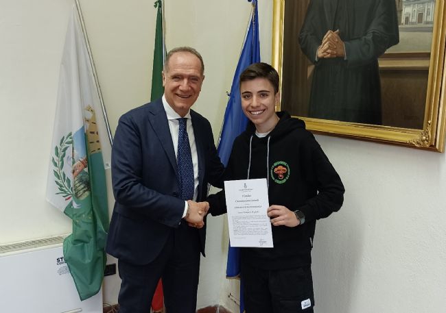 “Oltre ad aggiudicarsi il titolo – ha inoltre ricordato il primo cittadino – si è qualificato per le finali nazionali in programma il prossimo 19 maggio a Palermo. Samuel ancora una volta ha dimostrato la naturale dimestichezza con i numeri, dopo essere stato capace di arrivare in finale lo scorso anno a Milano ai Giochi matematici promossi dall'Università Bocconi. Al giovane alunno dell'istituto comprensivo G.B. Angioletti vanno i nostri complimenti, auspicando per lui successi in campo scolastico e professionale, a cominciare dai futuri impegni che da settembre lo vedranno iscritto al liceo scientifico, nella certezza che saprà esaudire uno dei sogni che custodisce nel suo personale cassetto, ovvero un proficuo percorso universitario presso la facoltà di Ingegneria”.