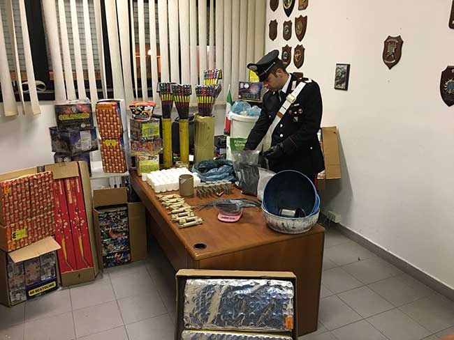 Nel corso dei servizi predisposti per contrastare fabbricazione e commercializzazione dei cosiddetti “botti di fine anno” il giovane è stato trovato in possesso di 12 “rendini (ordigni esplosivi di fabbricazione artigianale) e di 120 kg. di artifici pirotecnici di iv e v categoria.