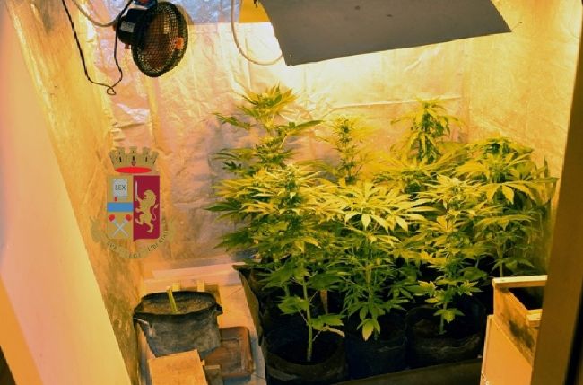 Gli agenti hanno rinvenuto 11 piante di marijuana, 4 piante di marijuana essiccate, circa 612 grammi di sostanza stupefacente essiccata e pronta per essere messa sul mercato, 43 grammi circa di hashish, la somma di 820 euro in banconote di vario taglio.