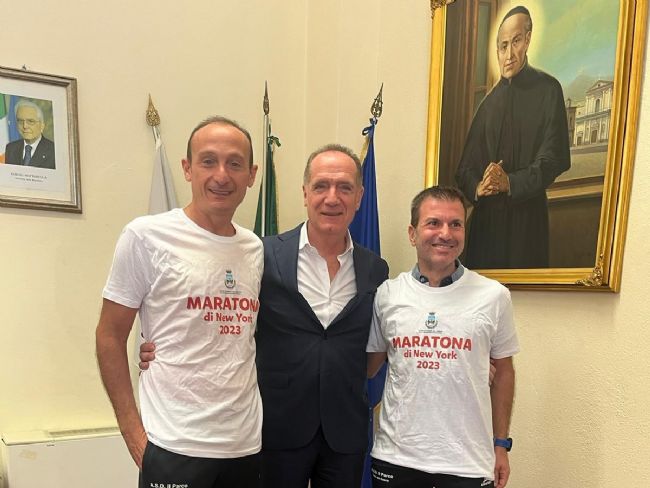 Quest’oggi, per salutare gli atleti e augurare loro un sincero in bocca al lupo da parte dell’amministrazione comunale e più in generale dell’intera città, il sindaco Luigi Mennella ha incontrato a palazzo Baronale i due protagonisti dell’avventura newyorkese e altri atleti e dirigenti dell’associazione podistica Il Parco. Insieme al primo cittadino, erano presenti anche i consiglieri comunali Vittorio Guarino ed Olimpia Viscoco, che insieme al sindaco hanno omaggiato gli atleti che gareggeranno domenica di una maglia con la scritta “Maratona di New York 2023” e lo stemma del Comune di Torre del Greco: “Si tratta – afferma Luigi Mennella – di una bella esperienza, che premia i sacrifici dei due podisti e più in generale dell’associazione Il Parco, che mi dicono essere molto attiva, non solo nel podismo. Seguirò con maggiore attenzione rispetto a quanto facevo in passato l’evolversi della gara in programma il 5 novembre, convinto che i nostri concittadini non lesineranno sforzi per portare a termine nel migliore dei modi possibile una gara dal grande fascino, che rappresenta il punto di arrivo per ogni podista che si cimenta sulla mitica distanza dei 42,195 km”.