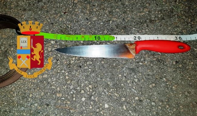 Sequestrati il coltello ed una cintura.
