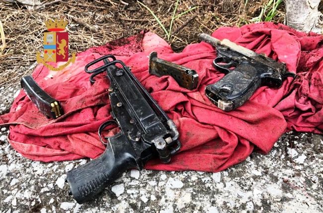 Ieri mattina gli agenti del Commissariato di Torre del Greco e della Sezione di P.G. della Procura della Repubblica di Torre Annunziata si sono recati in via Ruggiero a Torre del Greco ed hanno rinvenuto, occultate sotto un albero, una pistola mitragliatrice calibro 7 e una pistola calibro 9.