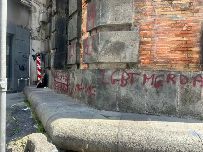 A Torre de Greco, sulle pareti del campanile della storica Basilica Pontificia di Santa Croce è comparsa la scritta fatta con lo spray “viva la figa, LGBT merda”. «In un clima generale di crescente odio, alimentato purtroppo da un pezzo della nostra classe dirigente, dobbiamo registrare l’intensificarsi delle aggressioni verbali, di cui le scritte omotransfobiche nei luoghi pubblici sono solo una parte, in diverse città dell’area metropolitana di Napoli. Prima del Pride, lo scorso giugno, era toccato a Torre Annunziata e qualche settimana fa il Centro antidiscriminazione di Pomigliano D’Arco ha denunciato un grave episodio simile di aggressione sulla cartellonista del centro» si legge in una nota di Antinoo Arcigay Napoli.
