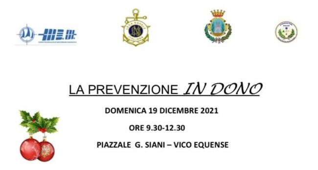 Si terrà domenica 19 dicembre, in Piazzale Giancarlo Siani di Vico Equense, la manifestazione denominata “La prevenzione in Dono”. Il percorso multidisciplinare, organizzato dalla dottoressa Serena Visconti (Dirigente medico Ginecologia Oncologica Istituto Nazionale Tumori di Napoli "Pascale") e promosso dalla Lega Navale Italiana con il patrocinio del Comune ospitante, del centro medico Me.Di. e dei R.o.s.s. di Castellammare di Stabia, vedrà la partecipazione di medici specialisti altamente qualificati in prevenzione oncologica e avrà lo scopo di sensibilizzare la popolazione sul tema dello screening e della diagnosi precoce. Per usufruire delle visite specialistiche e partecipare agli incontri, in programma dalle ore 9.30 alle 12.30, bisognerà essere maggiorenni e muniti di Green Pass. Non occorrerà nessuna prenotazione e saranno a titolo gratuito.