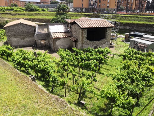 Il piano di calpestio dell’area circostante la villa è costituito dal terreno agricolo del 79 d.C., che conserva le tracce delle antiche coltivazioni e di cui sono stati eseguiti i calchi delle radici di vite. Accanto ad esse sono state ripiantate le viti per la ricostruzione dimostrativa dell’impianto del vigneto.