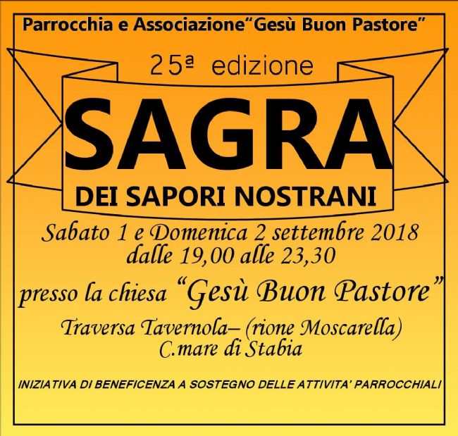 L'iniziativa sarà realizzata dall'Associazione di Volontariato Gesù Buon Pastore, negli ampi spazi della Parrocchia Gesù Buon Pastore, in Traversa Tavernola 17 - C/mare, e prevede la degustazione di specialità gastronomiche accompagnata da un lieto intrattenimento musicale, da giochi e attrazioni adatte a tutte le età.