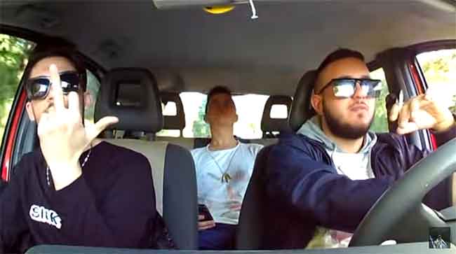 Panda fermata ad un posto di blocco. Uomo e donna in manette.