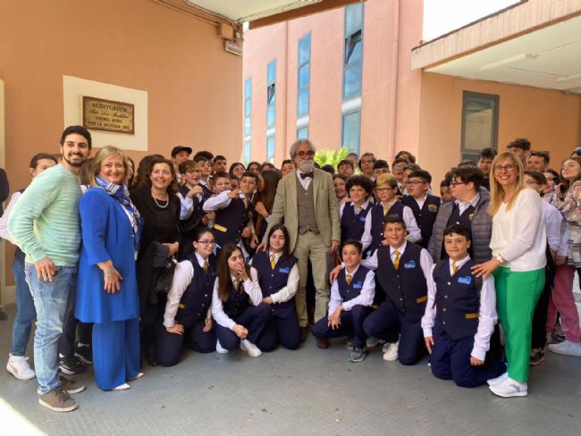 Presenti anche gli studenti della Scuola Secondaria di 1Grado "Fucini-Roncalli": «Ringraziamo la Dirigente Scolastica del Liceo F. Severi di C.mare di Stabia, Dott.ssa Elena Cavaliere per l’opportunità che ha dato ai nostri alunni di incontrare un maestro come Peppe Vessicchio, compositore stimato ed amato da tutte le generazioni.»