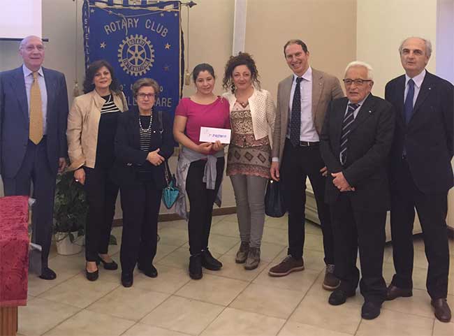 Il concorso, ha spiegato il dott. Paolo Cascone presidente del Rotary, rientra in una serie di iniziative del Rotary per le nuove generazioni, sia a livello internazionale come lo “scambio giovani”, le “borse di studio della pace”, sia a livello distrettuale come il RYLA (Rotary Youth Leadership Award), che a livello locale come la “premiazione alunni meritevoli” o il progetto “il piacere della lettura”, inaugurato pochi giorni fa presso l’Istituto comprensivo Denza. Il prof. Ugo Criscuolo, presidente della commissione borse di studio del Rotary di Castellammare, ha spiegato che il Rotary ha bandito per il corrente anno scolastico 2015-2016 tre borse di studio, delle quali la prima di euro 1000, la seconda di euro 600,00 e la terza di euro 400,00, da assegnate a tre studenti meritevoli dell’ultimo anno di corso, sulla base della valutazione di una prova scritta che verteva su tematiche relative al disagio giovanile. Il terzo premio è andato a Massimo Esposito dell’ITI Elia, il secondo a Francesca Vaccaro del Liceo classico Plinio Seniore, mentre il primo premio è stato vinto da Angela Mascolo dell’Istituto Alberghiero IPSSOA. A tutti i partecipanti è stata donata una pen drive per premiare l’impegno dimostrato nel partecipare alla manifestazione.