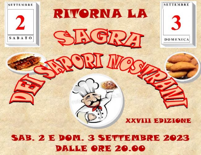 Anche quest’anno, con rinnovato entusiasmo, l’Associazione Gesù Buon Pastore propone la tradizionale "Sagra dei sapori nostrani", che si terrà presso la Parrocchia Gesù Buon Pastore di Traversa Tavernola - nelle sere di Sabato 2 e Domenica 3 Settembre. Due serate da trascorrere in compagnia di amici per degustare insieme squisite specialità gastronomiche, accompagnati da musica dal vivo e tanto divertimento per grandi e piccini. Il tutto per fini esclusivi di solidarietà! Allo scopo solidale, inoltre, bene si abbina l’opportunità di offrire ad un territorio di periferia, spesso lasciato fuori da altri eventi aggregativi, una bella occasione per trascorrere insieme qualche ora di spensieratezza e di sana allegria, in vista della ripresa delle attività.