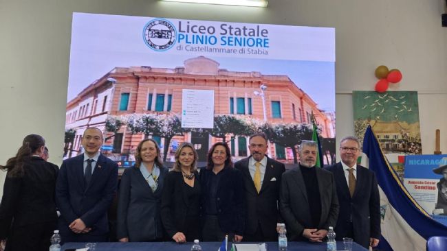 Si è svolto oggi, presso l’Aula Magna del Liceo Statale Plinio Seniore di Castellammare di Stabia, l’evento “SGUARDI DEL NICARAGUA: Europa-América Latina: Dos mundos, Un mismo idioma”, un appuntamento intenso e coinvolgente che ha celebrato con entusiasmo il profondo legame tra Europa e America Latina attraverso la lingua, l’arte e la cultura.