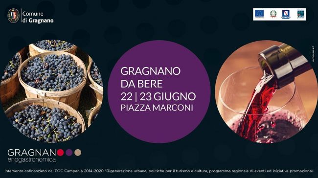 Sabato 22 e domenica 23 giugno, a Piazza Marconi e Via Marianna Spagnuolo, “Gragnano da Bere”, una due giorni focalizzata sul Gragnano con degustazioni di vino accompagnato da assaggi di pasta e tante altre specialità enogastronomiche del territorio