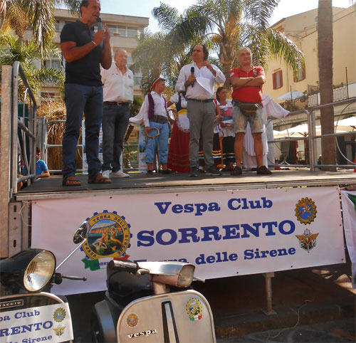 «Con questa manifestazione celebriamo un po' anche l'Italia» è stato sottolineato durante lo start dal Sindaco Giovanni Ruggiero e dal Consigliere Giovanni Iaccarino presenti insieme sul palco per fare gli onori di casa ed accogliere i quasi 1000 partecipanti e relativi Vespa Club capitanati dal Presidente nazionale Roberto Leardi e dal Presidente del Vespa Club di Sorrento "Terra delle Sirene" Domenico Esposito.