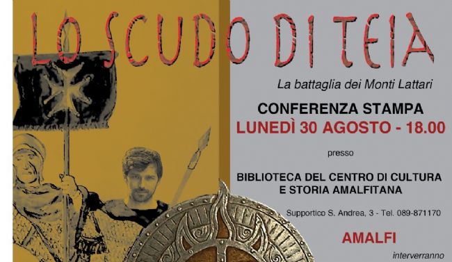 “Lo Scudo di Teia” è lo spettacolo teatrale che andrà in scena a Pimonte il 4 e 5 settembre 2021 presso il Castrum Pini. L’evento è nato da un’idea di Lucia Somma, presidente del Consiglio Comunale di Pimonte nonché delegata alla Cultura, che ha visto la luce grazie alla regia di Gabriele Saurio e ai testi scritti da Francesco Rivieccio. La splendida chiesa di Santa Maria di Pino farà da cornice a due serate a dir poco uniche, che saranno presentate ad Amalfi il prossimo lunedì, 30 agosto, presso la biblioteca del “Centro di Cultura e Storia Amalfitana”, alle ore 18,00.