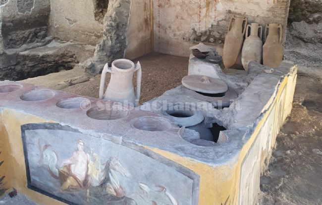 Apre al pubblico dal 12 agosto il termopolio della Regio V, l’antica tavola calda di Pompei, portata in luce durante gli ultimi scavi in un’area della città antica mai prima indagata, con visite straordinarie al cantiere della casa di Orione e della casa del Giardino.