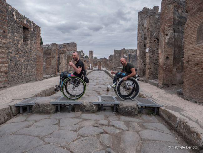 Già nel 2016 Pompei era stato tra i primi siti archeologici ad introdurre il percorso “Pompei per tutti”, dedicato alle persone con difficoltà motorie. A differenza del passato, quando la possibilità di visitare in carrozzina il sito era limitata alle sole aree nei pressi dell’anfiteatro, l’itinerario “Pompei per tutti”, di oltre 3km consente oggi di attraversare interamente la città archeologica dall’ingresso di Piazza Anfiteatro fino a Porta Marina, con accesso ai principali edifici.
