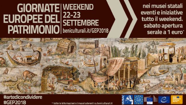 Le Giornate Europee del Patrimonio rappresentano il più importante appuntamento che riunisce tutti i popoli dell’Europa nel segno della cultura. Il tema individuato in sede europea per il 2018 è “Anno europeo del patrimonio culturale: L’Arte di condividere”.