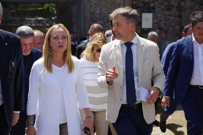La domus è stata visitata dal Presidente del Consiglio, Giorgia Meloni e dal Ministro della Cultura Gennaro Sangiuliano, alla presenza del Sottosegretario del MiC, Giammarco Mazzi, del Direttore generale Musei del MiC, Massimo Osanna, deL Direttore del Parco archeologico di Pompei, Gabriel Zuchtriegel, del Direttore generale del Grande Progetto Pompei, Gen. B. CC Giovanni Capasso. Presenti anche l ’Amministratore delegato del Gruppo FS, Luigi Ferraris e l ’Amministratore delegato di Trenitalia, Luigi Corradi.