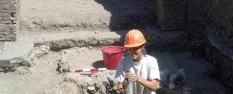 Un'anforetta di una bottega in via dell'Abbondanza negli Scavi di Pompei è il reperto appena emerso in uno dei cantieri dove giovani archeologi lavorano sotto gli occhi estasiati dei turisti.