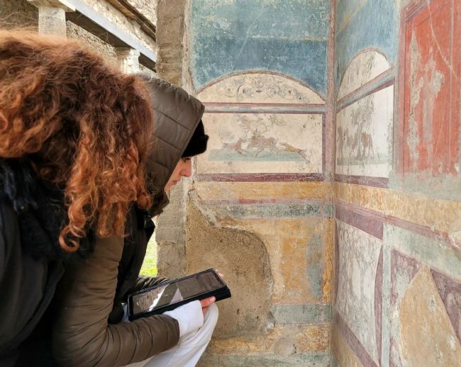 Gli strumenti e il sistema di acquisizione dei dati sono stati messi a punto dai funzionari del Parco e nell’ambito di un Accordo Attuativo finalizzato al monitoraggio del Sito di Pompei, vengono testati dagli studenti grazie ad un’attività di survey dello stato di conservazione e schedatura conservativa, in questo caso della Domus della Caccia Antica, l’importante complesso archeologico già oggetto di studio e parte dei progetti di ricerca sviluppati a Pompei dall’Università di Torino e dal Centro Conservazione e Restauro (CCR) “La Venaria Reale”, a partire dal 2016.