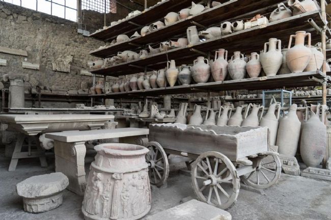 Anfore, vasellame in terracotta, piccoli e grandi contenitori usati per il trasporto e gli scambi commerciali di alimenti e non solo. Un’immersione tra i numerosissimi oggetti della vita quotidiana e i commerci a Pompei. È quanto consentirà la visita straordinaria ai depositi di Pompei, ospitati negli antichi granai del Foro, che per la prima volta da luglio aprono al pubblico.