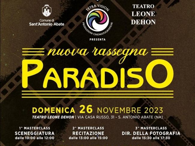 Una domenica all'insegna della cultura e dello spettacolo. L’associazione Tetra Vision torna a teatro con “Nuova rassegna Paradiso”, un evento artistico che vuole dar risalto alla scena teatrale campana, ospitando registi, attori e sceneggiatori provenienti dalle città di Gragnano, Salerno e Napoli che anno dopo anno coinvolgono il pubblico con spettacoli di alta qualità, dedicandosi con passione e dedizione alla diffusione della cultura.