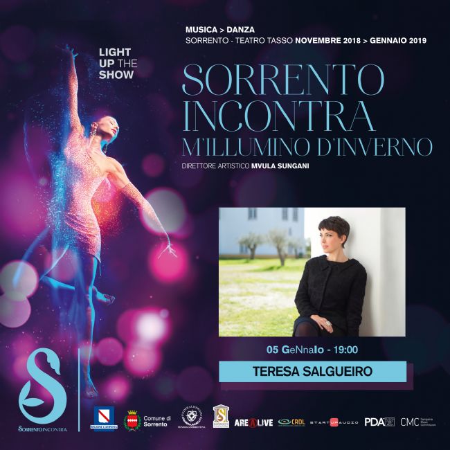 Sabato 5 gennaio, alle ore 19, al teatro Tasso di Sorrento, con in presso libero, si terrà il concerto della cantante portoghese Teresa Salgueiro, la "regina" del fado. E' considerata tra le voci più apprezzate a livello internazionale, tessitrice di ambientazioni magiche sin da quando, ancora diciassettenne, partecipa alla straordinaria avventura dei Madredeus. Dopo nove album e un successo mondiale ha scelto la via della ricerca come solista, regalando lavori sospesi e affascinanti da O Mistério, registrato nel Convento di Arrábida, all'emozionante O Horizonte, che accompagna l'ascoltatore in una ricerca di senso, futuro e pienezza.