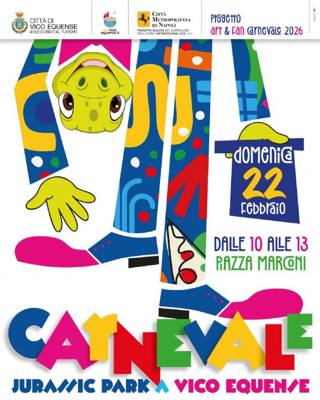 L’iniziativa rientra nel Progetto Art & Fun Carnevale 2026 e incluso nel Cartellone degli eventi Metropolitani 2025/2026, promossi dall’Amministrazione comunale di Vico Equense con l’obiettivo di offrire occasioni di aggregazione, socialità e condivisione, valorizzando gli spazi pubblici e regalando ai bambini un’esperienza coinvolgente e originale. Tra dinosauri, musica, intrattenimento e attività ludiche, Piazza Marconi diventerà per una mattinata un luogo fantastico, capace di unire immaginazione e tradizione carnevalesca.