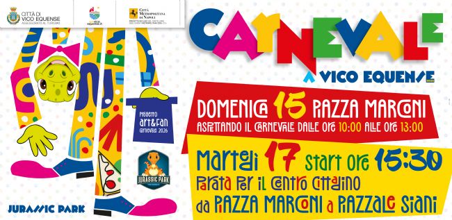 L’iniziativa, promossa dalla Città di Vico Equense, rientra nel progetto “Art & Fun – Carnevale 2026”, inserito nel cartellone degli eventi metropolitani della Città Metropolitana di Napoli.