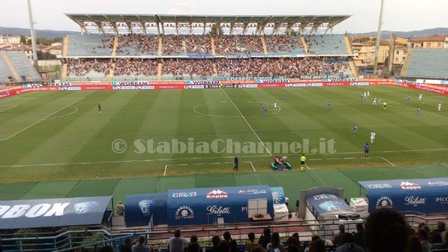 Nella ripresa i ritmi rallentano e la Juve Stabia comincia a pressare. Ma al 51’ Stulac prova a impensierire l’estremo difensore gialloblù dalla distanza, ma Branduani insegue tranquillamente il pallone con lo sguardo mentre si spegne rasoterra sul fondo. Dopo 5 minuti Mancuso si rende pericoloso sulla fascia, calcia di destro, ma il portiere delle vespe riesce con le mani a spedire la sfera in corner. Gli undici di Caserta sono troppo indecisi nei passaggi in fase offensiva e a ritmi bassi. Al 69’ però l’Empoli comincia a fare fatica a reggere il gioco e gli ospiti provano ad approfittarne. E proprio al 30’ arriva il pari delle vespe: bel passaggio di Di Gennaro per il neo entrato Cissé che a tu per tu con Brignoli non sbaglia e fa esplodere di gioia i circa 200 tifosi giunti da Castellammare. Al 33’ calcio di rigore per l’Empoli: presunto fallo di mano di un giocatore gialloblù, che ha scatenato l’ira dei campani. Dal dischetto si presenta La Gumina che segna, nonostante l’estremo difensore abbia indovinato la traiettoria. Ammutolita la panchina della Juve Stabia per la decisione del direttore di gara. I campani provano a schierarsi in maniera più offensiva nella speranza di riacciuffare il pari. La Juve Stabia prova il tutto e per tutto nel finale con Cissé e Di Gennaro i migliori tra le file delle vespe. Al 90’ Elia corre pericolosamente sulla fascia destra e serve l’ex Verona centralmente, colpo di tacco e arriva Di Gennaro murato però dalla difesa azzurra. Forcing finale dei gialloblù, ma dopo 4 minuti Massimi decreta la fine dell’incontro. Stesso risultato di 8 anni fa, ma dal sapore totalmente diverso: l’Empoli si è reso padrone dei primi 65 minuti, la Juve Stabia ha reagito molto bene nella ripresa dopo l’entrata in campo di Di Gennaro e Cissé. Rimane il rammarico per il rigore discutibile che ha sancito la vittoria dei toscani.