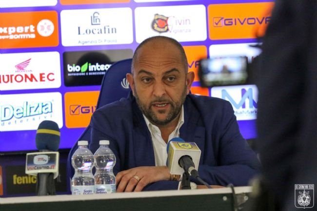 «Anche oggi si è visto un arbitraggio assurdo nei nostri confronti, premetto che la Juve Stabia ha fatto la sua partita e che è una società amica e ci tengo a ribadirlo. Ma vedere ciò che si è visto nel primo tempo, cioè la mano perpendicolare al corpo larga in mezzo all'area e a noi con questo sistema ci hanno dato tre rigori contro e a noi non lo fischiano, poi l'espulsione del capitano mi sembra che abbiamo toccato il fondo. Ci siamo veramente rotti i coglioni (lo ripete due volte, ndr), vorremmo avere il giusto: non è possibile che nell'arco di un campionato una squadra che lotta per vincere il campionato ha due soli episodi a favore, ad Andria e in casa col Catania un rigore che magari non c'era ed era lo stesso arbitro di oggi. A pensare male si fa peccato... Una società seria, che investe milioni e che paga regolarmente, che è di tutto rispetto deve giocare tutte le domeniche partendo da sotto. Da Bari in poi, a Monopoli uguale, domenica scorsa ci hanno annullato un gol regolare di due metri. Basta, dai su, finitela. Io non sono arrabbiato: sono deluso. Mi dispiace moltissimo per la mia proprietà: persone serie, che investono. Sono schifato dagli atteggiamenti. Si predica tanto di collaborazione, di avere un sistema di educazione, ma i primi devono essere loro: non esiste si utilizzi sempre un fare presuntuoso, hanno sempre ragione loro anche di fronte i dati di fatto. Poi mi sento dire che Martinelli doveva pure cacciarlo prima perché aveva risposto male... Tutte le domeniche la stessa musica. Va bene il Bari se vince festeggia, auguri al Bari, ma che tutte le domeniche c'è qualcuno che decide chi vive e chi muore io non ci sto più".