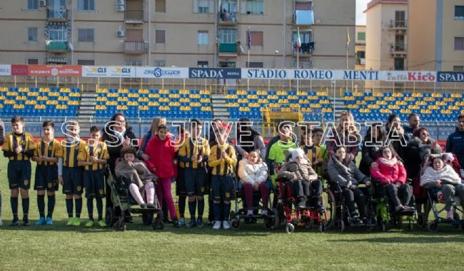 Si è svolta ieri la seconda edizione della partita solidare, che ha visto “affrontarsi”, anzi, giocare insieme, le quattro scuole calcio affiliate alla Juve Stabia: il centro tecnico formativo ‘Dieci e Lode’, l’A.S.D. Tre Torri San Marcellino 2019, la scuola calcio Virtus Goti ’97 e l’Oratorio Lourdes. I piccoli calciatori sono scesi in campo a sostegno delle bambine affette dalla sindrome di Riett. Un goal per la ricerca, un goal in nome della solidarietà: è questa la vittoria più bella e il messaggio più formativo da dare alle nuove generazioni. Campioni prima fuori dal campo e poi dentro il rettangolo di gioco: regola aurea. Hanno partecipato alla bellissima manifestazione anche due giocatori gialloblu: Luigi Canotto e Danilo Russo, che hanno potuto scattare qualche foto con i bambini e le bambine presenti. Basta poco per donare un sorriso. Aspettando il ritorno del campionato, i calciatori delle vespe scendono in campo per vincere la partita più importante con dei "compagni di squadra" d'eccezione.