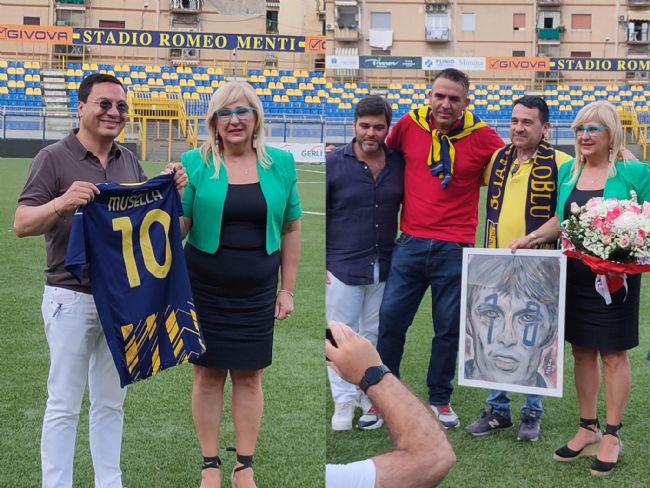 Commozione al Quinto Memorial di Gaetano Musella. Si è svolto due giorni fa l’evento sportivo per commemorare il grande campione ex Napoli e Juve Stabia, morto nel settembre del 2013. Sul sintetico del Romeo Menti, davanti a una tribuna coperta gremita, si sono sfidati il Team Juve Stabia e la FC Gesin, con la partecipazione di tanti ex giocatori della squadra gialloblù. Match terminato con il risultato di 3 a 1 in favore del Team Stabia: a segno Costantino, Fiorillo e Solimene. Al termine dell’incontro il presidente della S.S. Juve Stabia, Andrea Langella, ha consegnato alla moglie di Gaetano Musella una maglia commemorativa con il numero 10. Subito dopo l’artista Tullio Cotticelli, insieme a Gianfranco Piccirillo per l’Associazione StabiAmore, ha omaggiato ‘Nino de oro’, consegnando un dipinto alla famiglia Musella con il volto del giocatore. «Rimettere piede su questo campo, dove ha giocato mio marito, è stato motivo di commozione –ha spiegato la moglie Simona ai nostri microfoni-. Sono orgogliosa e contenta: so che mio marito viene ricordato da tutti per la sua umiltà e la sua bontà. Castellammare è casa mia e lo sento. Qui ho ricevuto affetto e amore nei periodi più belli della mia vita. Spero che un domani questa manifestazione venga ampliata, coinvolgendo altre squadre dove lui ha militato.»