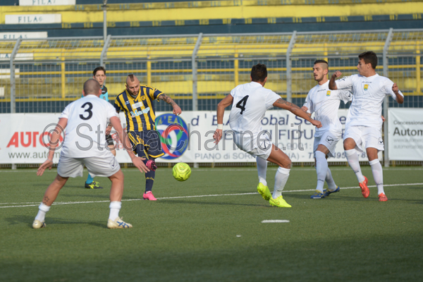 Il segno X è diventato di moda a Castellammare e non è un caso che anche il Melfi sia riuscito nell'impresa di strappare un punto al Menti al termine di un match all'insegna dell'equilibrio in cui le giocate spettacolari sono ridotte davvero all'osso. L'illusorio gol di Arcidiacono in avvio di gara non è sufficiente per indirizzare la gara sul binario delle vespe, raggiunte al 31' da Herrera e incapaci di impensierire con continuità Santurro nella seconda parte del match. Il dodicesimo risultato utile consecutivo non basta a giustificare l'andamento lento di una squadra alle prese con un'involuzione tecnica senza fine. Zavettieri è costretto a ridisegnare il reparto arretrato a causa dell'imminente partenza di Migliorini verso Avellino e si affida al 4-2-3-1. Il giovane Carillo affianca Polak al centro della difesa, mentre Cancellotti e Liotti presidiano le corsie esterne; in mediana agiscono Obodo e Favasuli, ai cui lati operano Arcidiacono e Contessa; Bombagi, infine, ha il compito di ispirare l'unica punta Nicastro. Ugolotti fa ricorso al 4-3-3, con i due gioiellini Herrera e Soumaré in rampa di lancio a supporto di Masini. Le vespe partono a spron battuto e dopo 8' la gara si sblocca. Contessa dalla corsia sinistra fa partire un traversone che trova impreparato Santurro ma non Arcidiacono, il quale sul secondo palo infila l'ex portiere gialloblù con un rasoterra implacabile portando in vantaggio i padroni di casa. L'1-0 galvanizza le vespe, che sfiorano subito il raddoppio al 12' con un colpo di testa di Contessa di poco alto sopra la traversa su cross dalla destra di Cancellotti. Il Melfi prova a reagire e si rende pericoloso al 17' con un colpo di testa di Soumaré sugli sviluppi di un corner dalla destra, ma la traiettoria è larga e la palla si perde di poco a lato. I lucani continuano a spingere e al 21' Maimone fa tremare Polito con un diagonale da posizione defilata che sfiora il palo alla destra del portiere gialloblù. Le vespe si destano dunque dal torpore e sfiorano il raddoppio al 22' con Bombagi, su cui Santurro è costretto due volte alla chiusura disperata per evitare il peggio. Al 31' arriva però la beffa. Masini trova uno spiraglio sulla sinistra e serve al centro Herrera, il quale si intrufola tra Obodo e Carillo e sorprende Polito con un rasoterra non irresistibile sul primo palo, pareggiando i conti. I ritmi del match non sono alti, ma i ribaltamenti di fronte sono repentini e al 40' Bombagi prova a ristabilire le distanze con un gran destro a giro su cui Santurro è costretto a superarsi per deviare in corner la sfera destinata all'incrocio dei pali. Al 43' Herrera sfiora la doppietta con un colpo ad effetto, ma non inquadra lo specchio della porta per pochi centimetri facendo correre un brivido lungo la schiena dei tifosi assiepati sugli spalti del Menti. Il primo tempo si chiude così sull'1-1. L'avvio impetuoso delle vespe è soltanto un'illusione, perché al gol di Arcidiacono risponde Herrera alla mezz'ora. La ripresa si apre con lo stesso canovaccio della prima frazione. Soumaré al 4' prova a sorprendere Polito in uscita ma non trova l'angolo giusto per battere a rete; le vespe rispondono con un destro di Bombagi dal limite dell'area che sfiora il palo a Santurro ormai battuto. Zavettieri decide allora di cambiare le carte in tavola, inserendo Gomez al posto di Liotti per aumentare il potenziale offensivo della squadra. Il predominio territoriale delle vespe, tuttavia, non produce effetti e l'equilibrio regna sovrano. Al 28' Bombagi rimedia un infortunio e il mister è costretto a sostituirlo con Gatto. Un minuto più tardi, Contessa colpisce di testa sugli sviluppi di un calcio d'angolo da sinistra, ma non riesce ad angolare la conclusione e la sfera termina sul fondo. Il match non si sblocca e Zavettieri decide di coprirsi sugli esterni inserendo Romeo al 37' al posto di Contessa, vittima di una distorsione alla caviglia. Al 43' Arcidiacono su corner da sinistra serve Nicastro, il quale anticipa De Montis e prova a beffare Santurro con un pallonetto che costringe il portiere lucano a ricorrere agli straordinari con l'aiuto della traversa. Al 48' l'ex Di Nunzio si fa espellere per una gomitata ai danni di Gomez al limite dell'area ospite, imitato poco dopo da Cancellotti, costretto ad abbandonare anzitempo il campo per doppia ammonizione. Le emozioni, tuttavia, finiscono qui e le vespe lasciano nuovamente il Menti tra i fischi assordanti dei tifosi, costretti ad ingoiare l'ennesimo boccone amaro tra le mura amiche, sempre più avare di soddisfazioni per i colori gialloblù.
