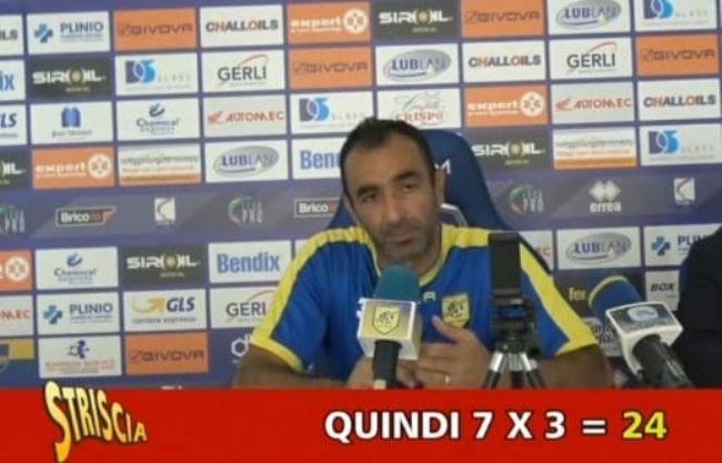 Juve Stabia - Mister Colucci a 'Striscia la Notizia': «7x3=24»