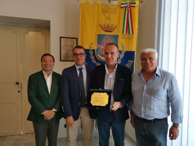 Accolti con soddisfazione i progressi compiuti, la delegazione della Lega Serie B e i vertici societari della Juve Stabia si sono recati presso la Casa municipale, dove il Sindaco di Castellammare di Stabia, ing. Gaetano Cimmino, ha salutato gli ospiti e donato al presidente Mauro Balata una targa, in segno di ringraziamento per l’attività svolta e l’impegno profuso a favore della Juve Stabia e di tutte le realtà che si preparano al prossimo campionato di Serie B.