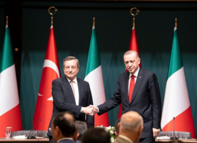 Il vertice intergornativo tra Italia e Turchia "indica la volontà comune di rafforzare la collaborazione: Italia e Turchia sono partner, amici alleati", ha detto Draghi al termine dell'incontro con il presidente turco Recep Tayyip Erdogan. Italia e Turchia hanno firmato 9 accordi per "rafforzare la cooperazione", ha riferito Erdogan. Il presidente turco ha fatto sapere che l'obiettivo per quest'anno è arrivare a un'interscambio economico di 25 miliardi di dollari."C'è la volontà comune di rafforzare la partnership tra Italia e Turchia, i due paesi lavorano insieme per una pace stabile e duratura" .Lo afferma Mario Draghi nel corso della conferenza stampa al termine del vertice. Draghi ha anche auspicato un rapido sblocco del trasporto delle derrate alimentari. Il premier ha tra l'altro ricordato i legami storici tra Italia e Turchia, primo partner commerciale nell'area del medio oriente.