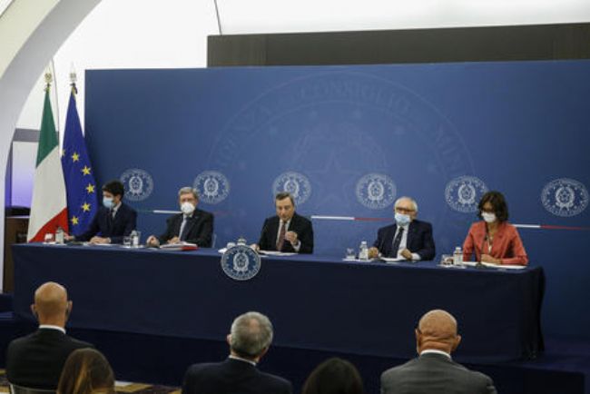 Conferenza stampa del premier Mario Draghi da Palazzo Chigi. All'ordine del giorno i temi del green pass e della scuola con la presenza dei ministri Roberto Speranza e Patrizio Bianchi.