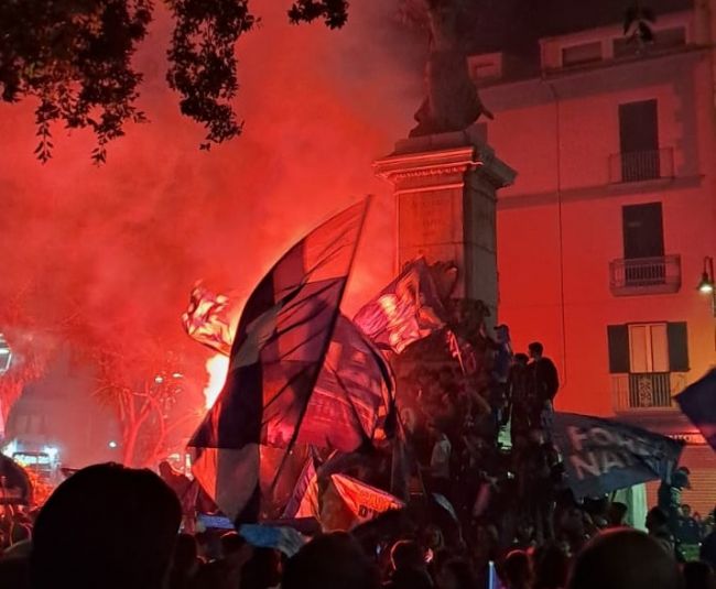Fuochi d'artificio, botti, fumogeni, clacson e trombette: Napoli è in delirio - il rumore è assordante - al fischio finale della partita di Udine che ha assegnato alla squadra di Spalletti il terzo scudetto della sua storia. Lo stadio Maradona, dove cinquantamila tifosi si sono riuniti per guardare il match sui maxi-schermi è letteralmente esploso. Ma alle stesse scene di giubilo si assiste ovunque in città, il cui centro è off limits alle auto e presidiato dalle forze di polizia, a cominciare dal largo Maradona, ai Quartieri Spagnoli, tempio laico del tifo azzurro. "Una giornata storica, grazie Napoli", dice una tifosa piangendo.
