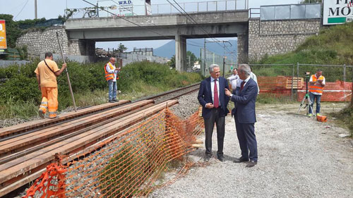 Questa mattina con un sopralluogo degli assessori Giovanni Romano e Edoardo Cosenza, presso il collettore di Gragnano - foce Sarno si è di fatto riaperto il cantiere in zona Ponte Persica a Castellammare per risolvere una volta per tutte il problema della rete fognaria adiacente al fiume Sarno che da sempre comporta problemi di allagamenti e disagi. Il collettore, che serve anche i comuni di Casola, Pimonte, Castellammare di Stabia e Santa Maria la Carità opera per un bacino di oltre 60 mila abitanti. I due esponenti della Giunta Caldoro hanno spiegato che l'intervento riguarda la realizzazione di un minitunnel che consentirà al collettore fognario di attraversare sia la ferrovia Circumvesuviana che il raccordo autostradale che collega la A3 con la Penisola Sorrentina.