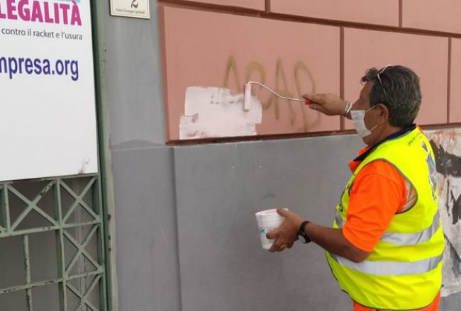 L’amministrazione comunale di Castellammare di Stabia, attraverso uno specifico atto di indirizzo del sindaco Gaetano Cimmino al Settore Lavori pubblici, sta cancellando dalle strade e dai muri della città qualsiasi scritta riconducibile alla criminalità organizzata e contro le forze dell’ordine.